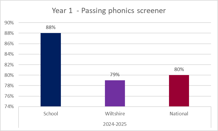This year, three of our Year 1 pupils did not take part in the Phonics Screener. This was because they were either new to learning English or are taught within our Resource Base.